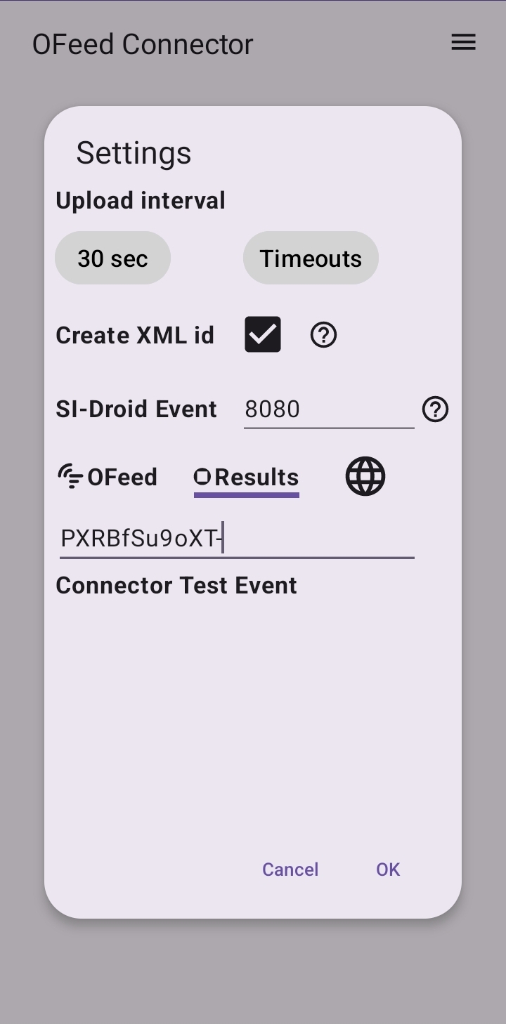 Umožňuje jednoduše propojit SI-Droid Event s OResults.eu. Stačí jen vyplnit port výsledkové služby SI-Droid aplikace a Api key z webu OResults získaný v nastavení závodu a spustit nahrávání v požadovaném intervalu.